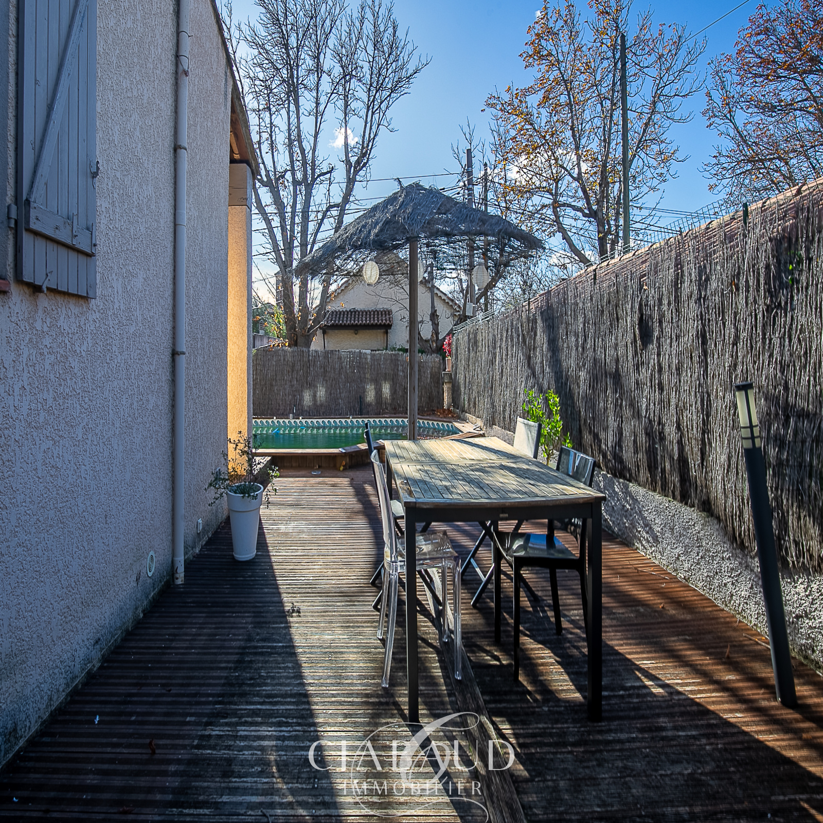 EXCLUSIVITÉ - Située au calme, dans le centre du village de Luynes, une villa de type 6 d'environ 190m2 avec piscine chauffée, combles aménagés et abris voiture sur un terrain de 601m2. Elle est composée au rez-de-chaussée, d'un hall d'entrée de 11,64m2 avec rangement, d'une pièce de vie de 36,51m2 avec accès terrasse, d'une cuisine indépendante de 13,10m2 avec cellier de 2,80m2, de deux chambres ainsi qu'une buanderie avec une salle d'eau WC. A l'étage, 3 chambres avec rangement dont une suite parentale avec sa salle de bains et son bureau, un WC et une salle de bains avec triple vasques ainsi qu'une salle de bains WC. Accessible depuis une chambre, 44m2 de combles aménagés pouvant servir de salle de jeux. Double vitrage, chauffage électrique et eau chaude sanitaire avec panneaux solaire. Proximité commerces et écoles à pied. Loyer 2577.06€. Dépôt de garantie 2577.06€, honoraires agence 1232.20€ dont 568.71€ pour les états des lieux. Disponible à partir du 05/01/2026. Contact CIABAUD Immobilier 04 42 53 35 13.