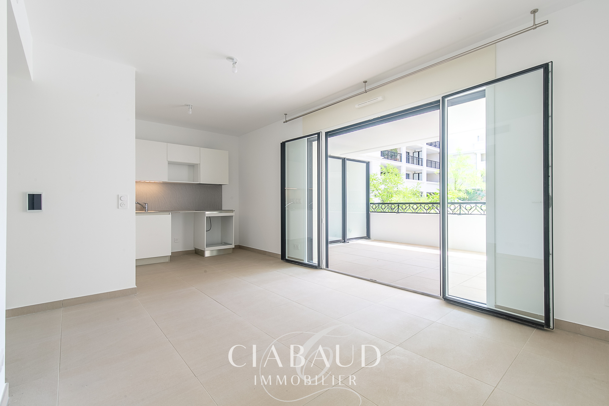 Situé au calme, à 10 minutes à pied du centre historique d'Aix-en-Provence. Donnant sur la cour intérieure arborée d’une résidence de grand standing entièrement sécurisée, un appartement exposé Sud-Ouest de type 2 de 42,1m2 avec terrasse de 22,61m2 et garage. Il est composé d'un hall d’entrée avec placard, donnant sur une pièce de vie de 18,43m2 avec cuisine américaine, d'une chambre de 12,1m2 avec placard, d'une salle d'eau, ainsi qu'un WC indépendant suspendu. Pompe à chaleur individuelle par gainable réversible (chauffage, climatisation, eau chaude). Alliant élégance et modernité, cette résidence incarne parfaitement l'architecture provençale avec ses grandes baies vitrées et l'utilisation de matériaux nobles. Tout en proposant une technicité haut de gamme, domotique avec gestion technique centralisée de chaque pièce (volet roulant, chauffage, climatisation et éclairage). L’accès aux grands axes (A8, A51), aux transports en commun, à la gare TGV et à l'aéroport se fait en toute facilité. Appartement neuf avec accessibilité PMR, sous toutes garanties et RT2020. Loyer 1200€ dont 200€ de charges comprenant l'eau froide, l'eau chaude, le chauffage et la taxe d'ordures ménagères. Dépôt de garantie 1000€. Honoraires agence 547,3€ dont 126,3€ d'état des lieux. Pour plus d’informations, contactez-nous dès maintenant : CIABAUD Immobilier Luynes au 04 42 53 35 13. CIABAUD IMMOBILIER : agence spécialisée dans la transaction, la location et la gestion locative.