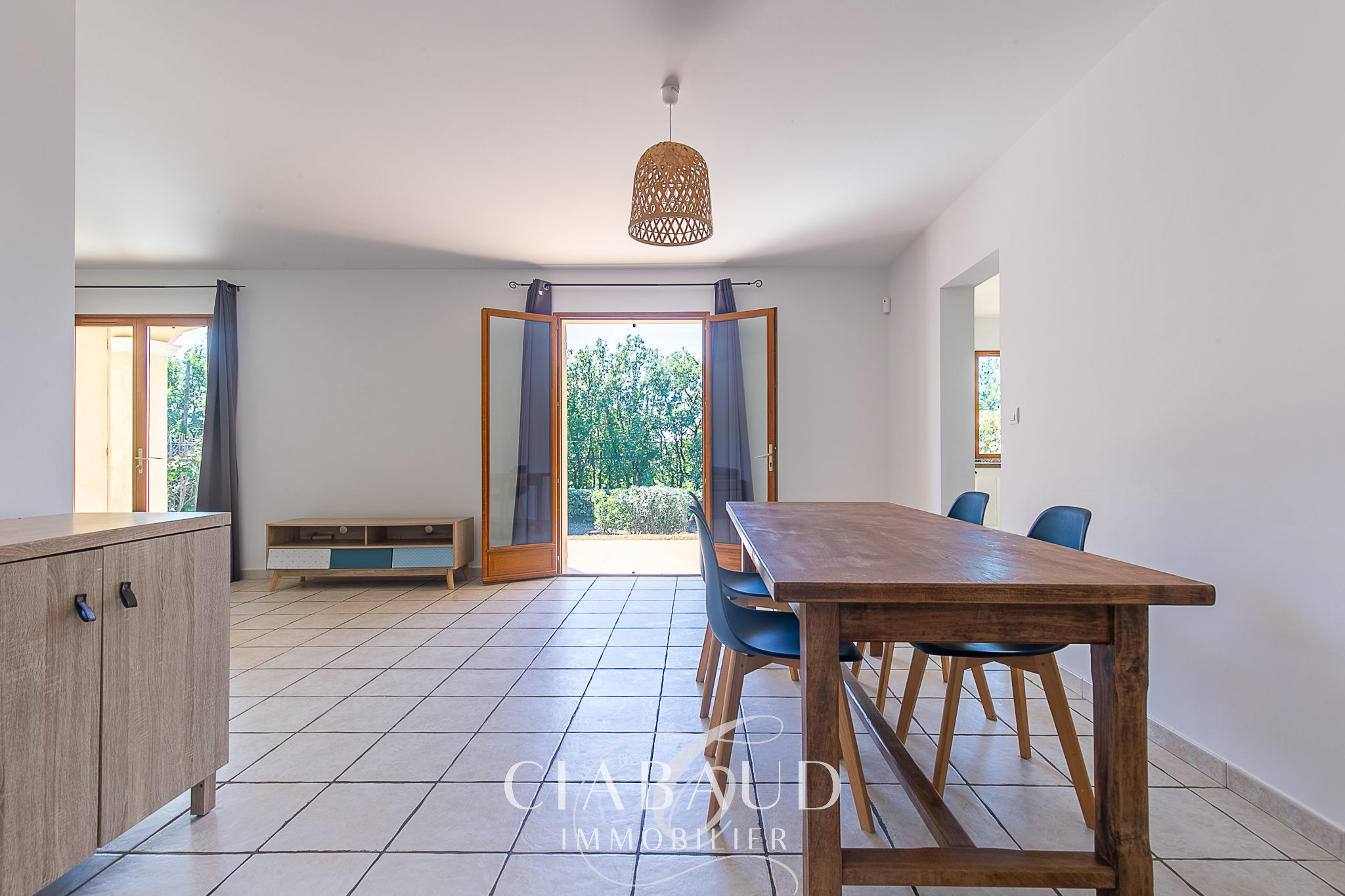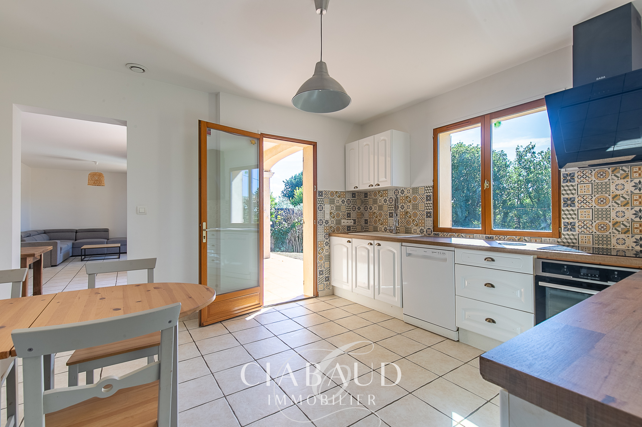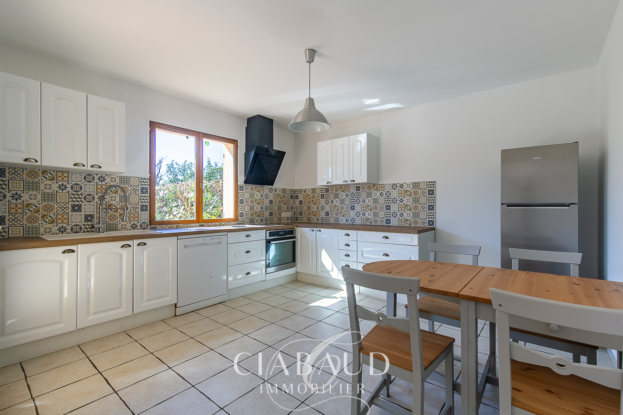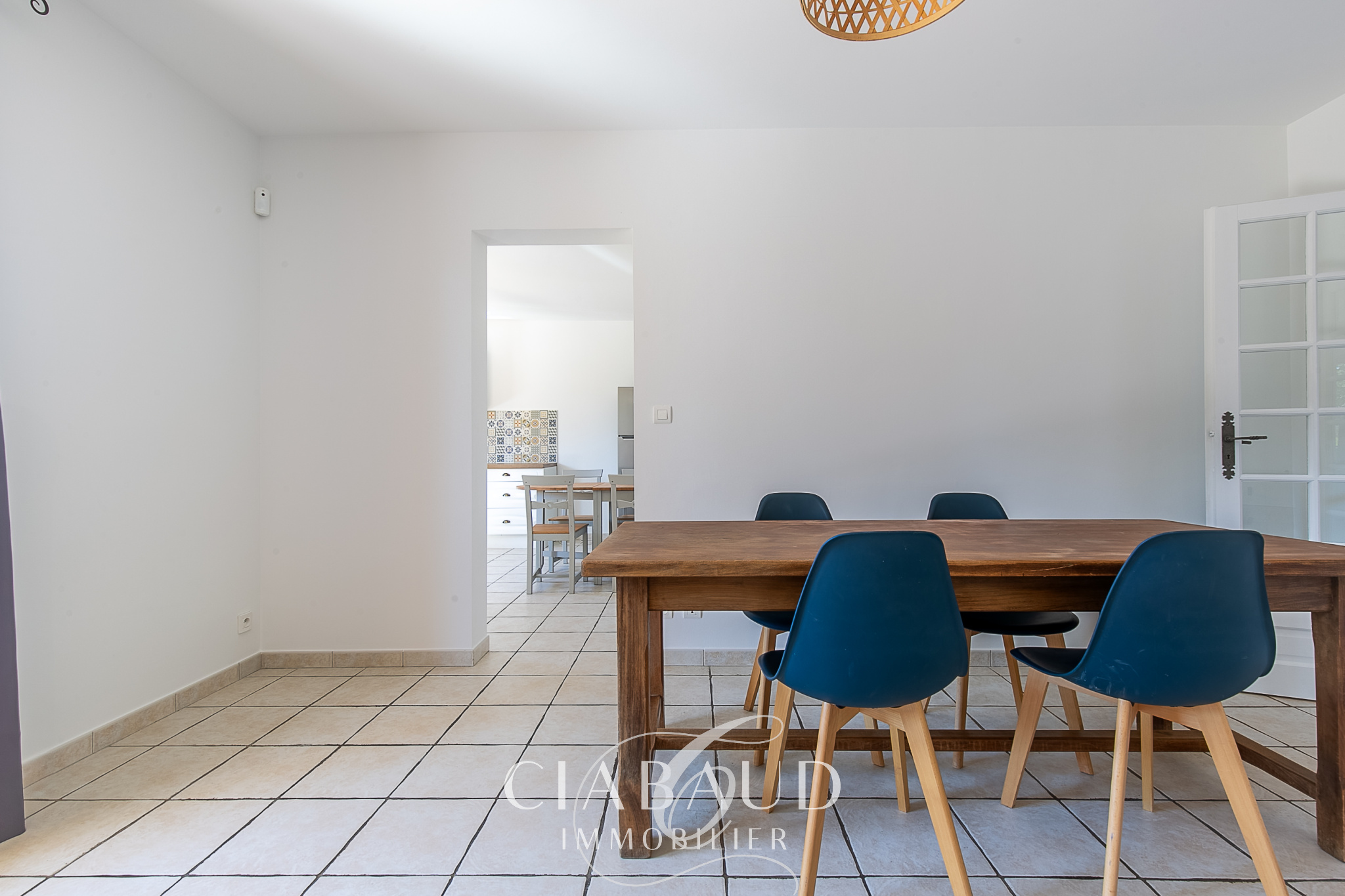 Située dans le village de Luynes, au sud d'Aix-en-Provence. Une villa meublée de plain-pied de type 4 d'environ 108,91m² avec garage de 56m2 sur un terrain de 700m2. Elle est composée d'un hall d'entrée avec placard d'accueil, d'un grand séjour d'une cuisine indépendante, de trois chambres de plain-pied, d'une salle de bains et d'un WC. Loyer mensuel 2 000 € hors charges. Dépôt de garantie 4000 €. Honoraires agence 1415,83 € dont 326,73€ d'état des lieux. Proximité écoles internationales (IBS, CIPEC), accès gare TGV et aéroport aisé. Disponibilité immédiate.