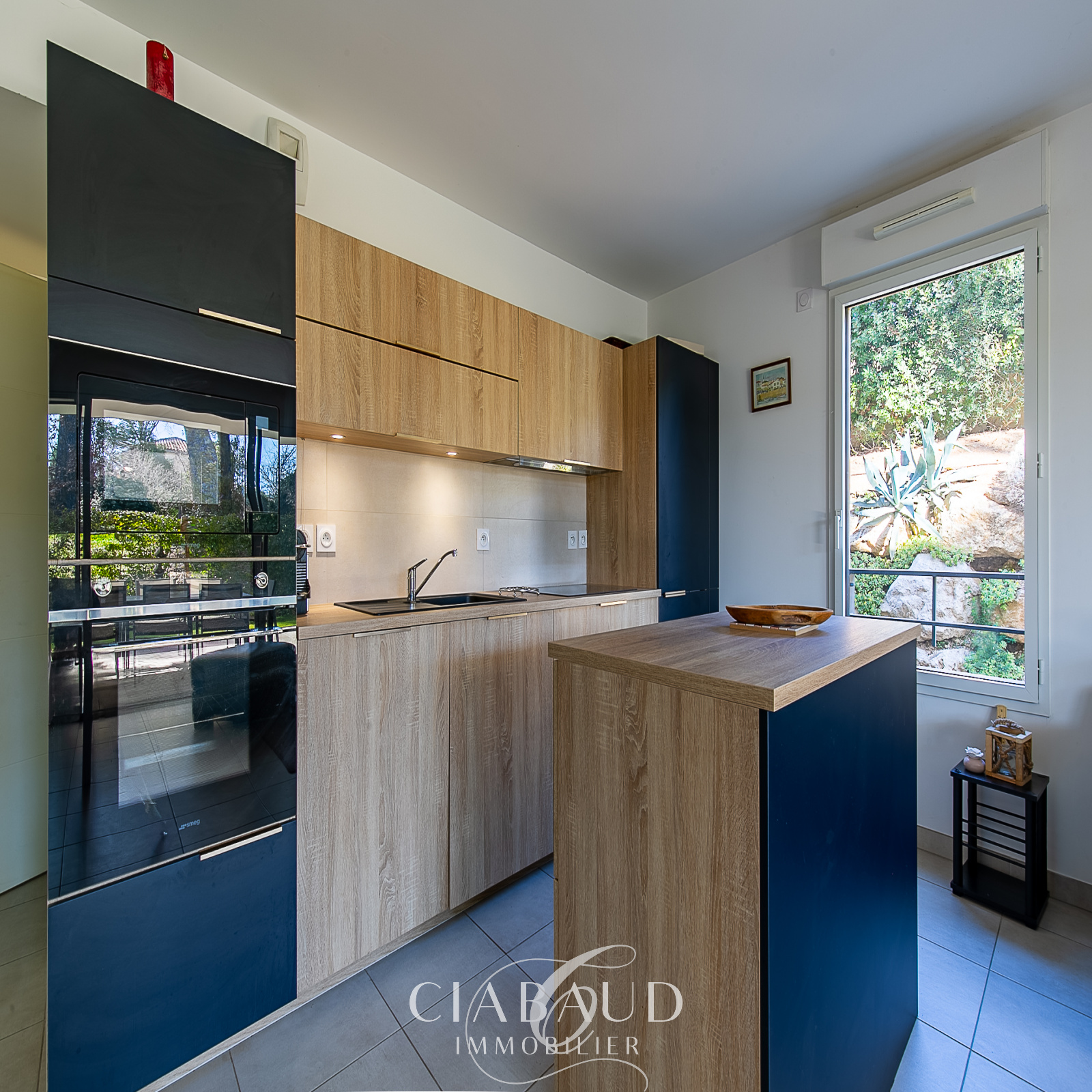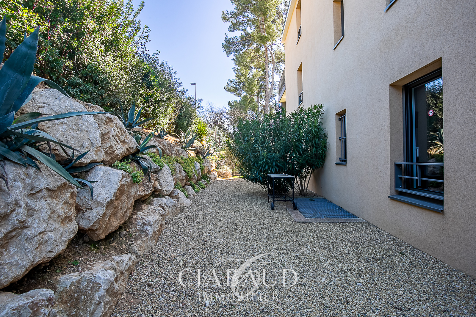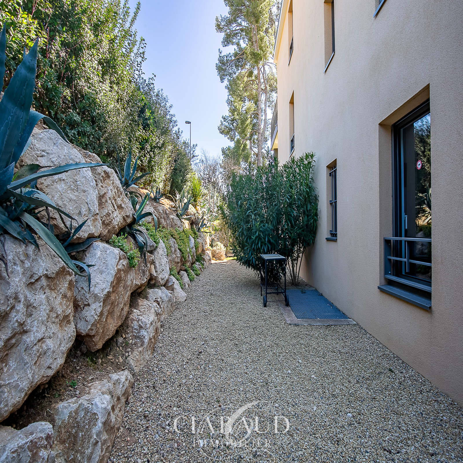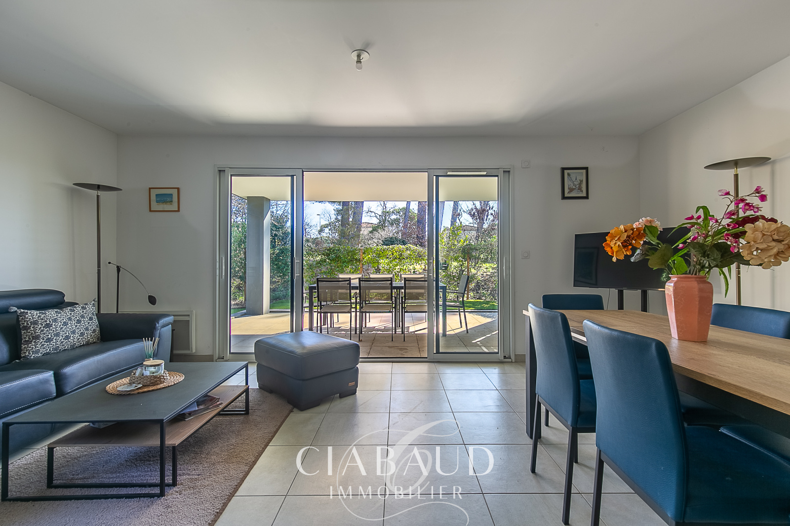 Rare à la vente - Situé au calme et sans vis-à-vis, en plein cœur du village de Luynes, au sud d'Aix-en-Provence, ce rez-de-jardin de type 3 d’une superficie de 71,67 m² avec 210 m² de jardin et un double garage se trouve dans une résidence récente et sécurisée, construite en 2019. Il se compose d’un hall d’entrée avec placard de rangement, d’une grande pièce de vie de 30,94 m² avec cuisine américaine et cellier, de deux chambres, d’une salle de bains et d’un WC indépendant. Prestations de qualité, environnement privilégié avec vue sur un parc paysager en zone naturelle. Charges mensuelles : 190 € (comprenant l’eau froide, l’entretien de la copropriété et du chauffe-eau thermodynamique). Taxe foncière : 1 682 €. Idéal pour un couple ou une personne âgée, cet appartement offre un espace extérieur agréable ainsi qu’un vaste espace de stockage, permettant une occupation confortable sur le long terme. Garantie dommages-ouvrage et décennale en cours. Pour plus d’informations, contactez-nous dès maintenant : CIABAUD Immobilier Luynes au 04 42 53 35 13. CIABAUD IMMOBILIER : agence spécialisée dans la transaction, la location et la gestion locative.