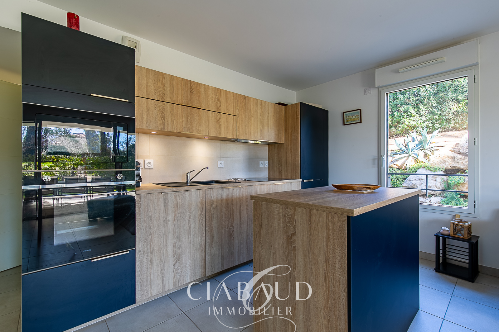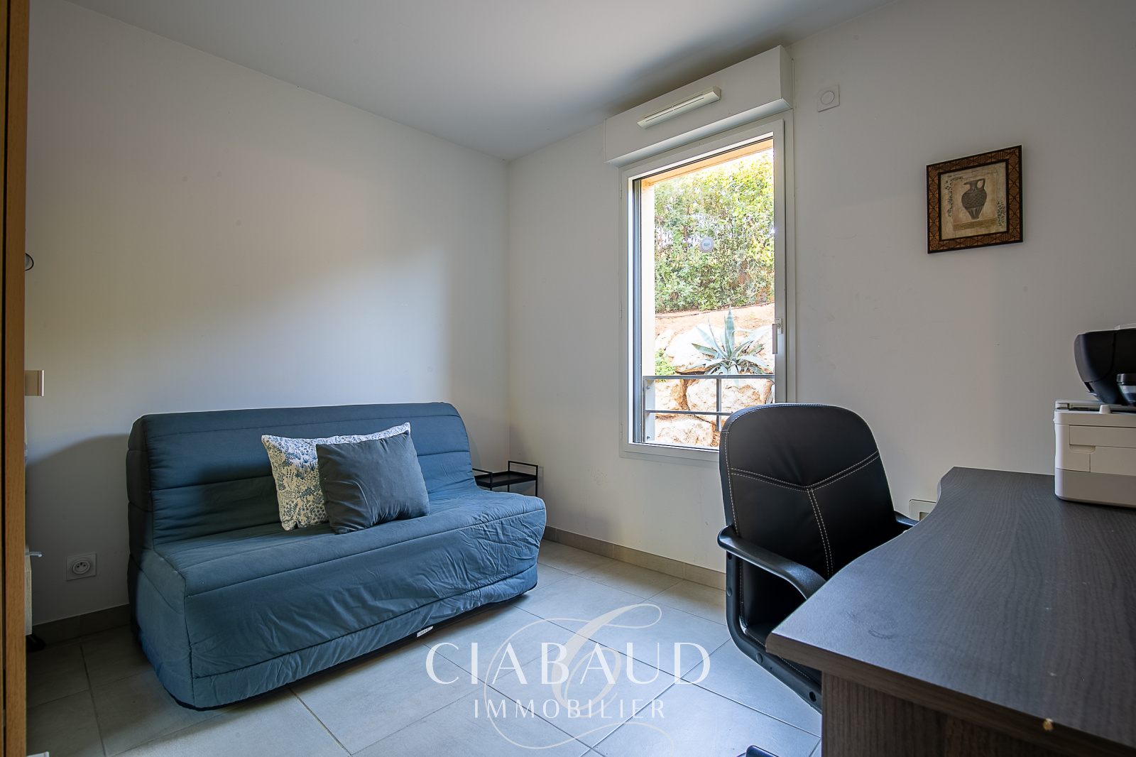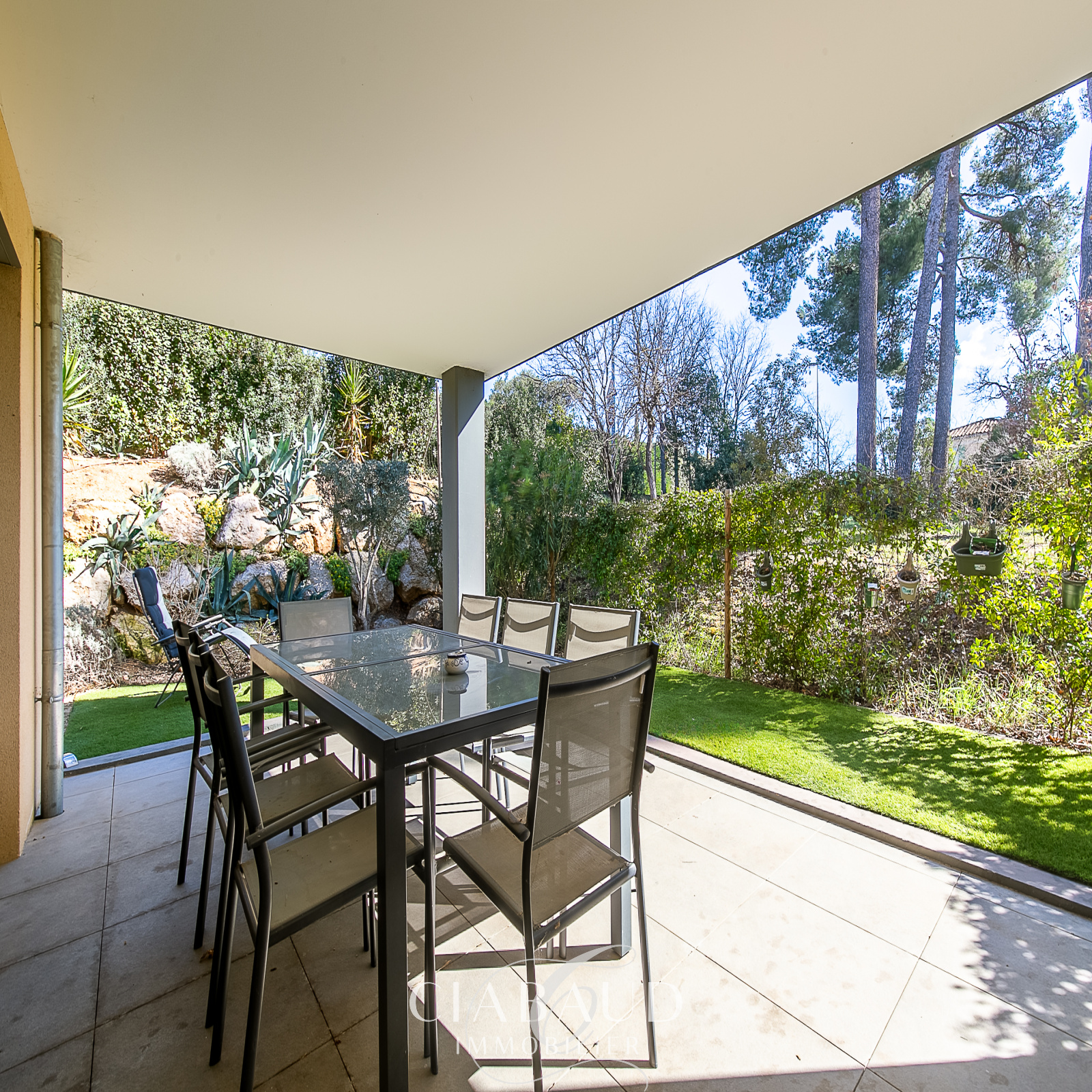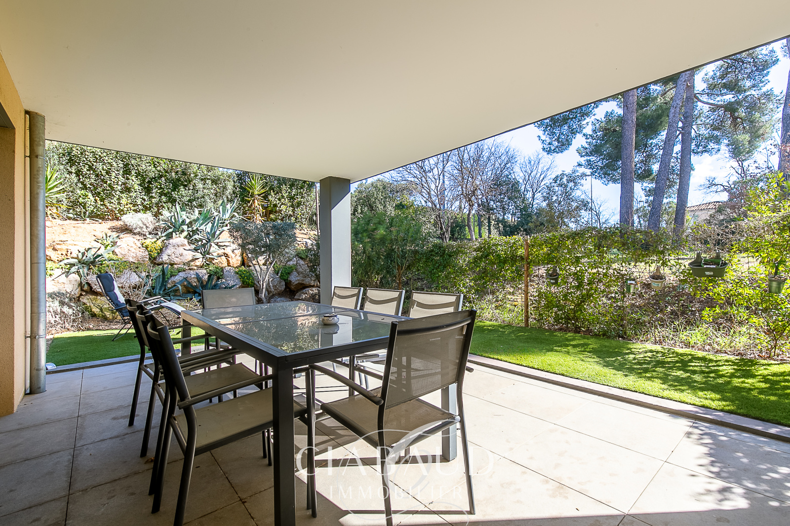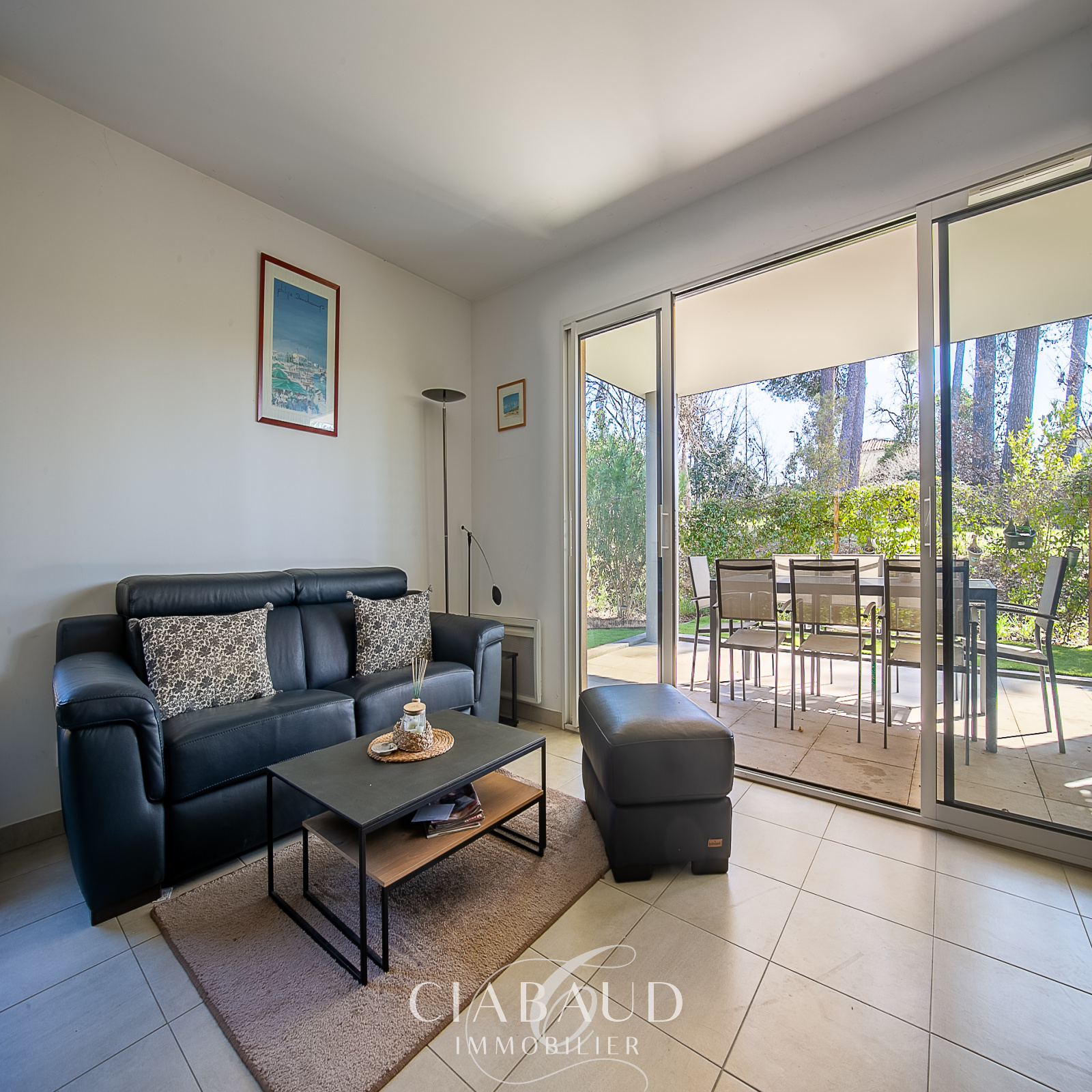 Rare à la vente - Situé au calme et sans vis-à-vis, en plein cœur du village de Luynes, au sud d'Aix-en-Provence, ce rez-de-jardin de type 3 d’une superficie de 71,67 m² avec 210 m² de jardin et un double garage se trouve dans une résidence récente et sécurisée, construite en 2019. Il se compose d’un hall d’entrée avec placard de rangement, d’une grande pièce de vie de 30,94 m² avec cuisine américaine et cellier, de deux chambres, d’une salle de bains et d’un WC indépendant. Prestations de qualité, environnement privilégié avec vue sur un parc paysager en zone naturelle. Charges mensuelles : 190 € (comprenant l’eau froide, l’entretien de la copropriété et du chauffe-eau thermodynamique). Taxe foncière : 1 682 €. Idéal pour un couple ou une personne âgée, cet appartement offre un espace extérieur agréable ainsi qu’un vaste espace de stockage, permettant une occupation confortable sur le long terme. Garantie dommages-ouvrage et décennale en cours. Pour plus d’informations, contactez-nous dès maintenant : CIABAUD Immobilier Luynes au 04 42 53 35 13. CIABAUD IMMOBILIER : agence spécialisée dans la transaction, la location et la gestion locative.