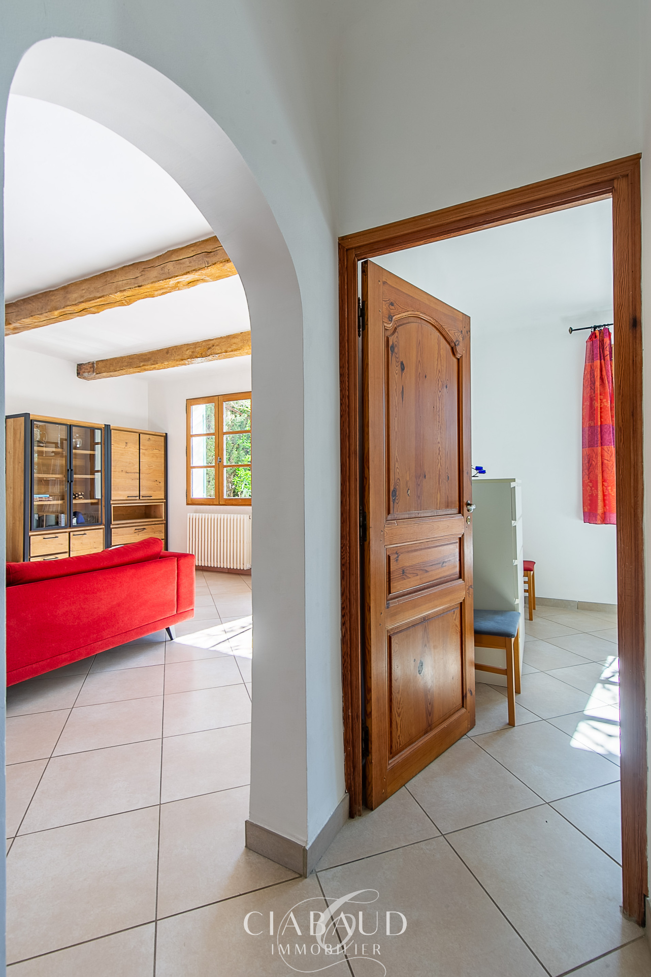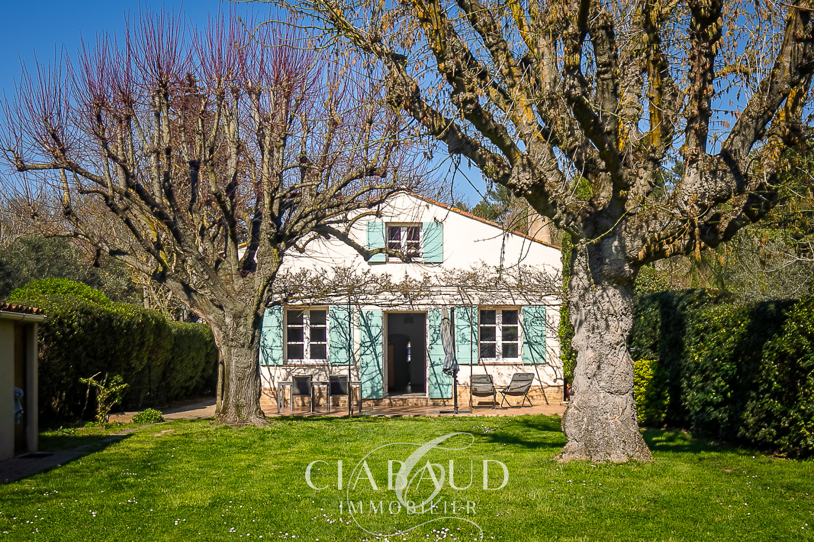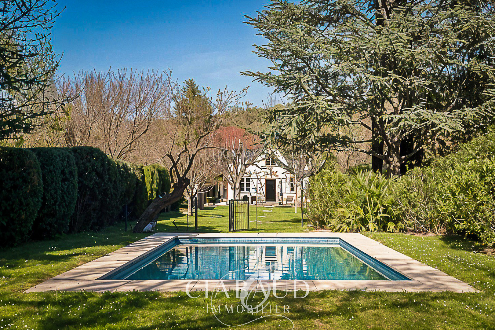 Située dans un écrin de verdure, au calme absolu et sans vis-à-vis, dans la campagne de Luynes à 1km du centre du village, à 5 km du centre-ville d’Aix-en-Provence, cette propriété mêle authenticité et charme de l’ancien. Implantée sur un terrain de 1 640 m², elle comprend une bâtisse d’environ 180 m², une piscine, un garage ainsi que des annexes.