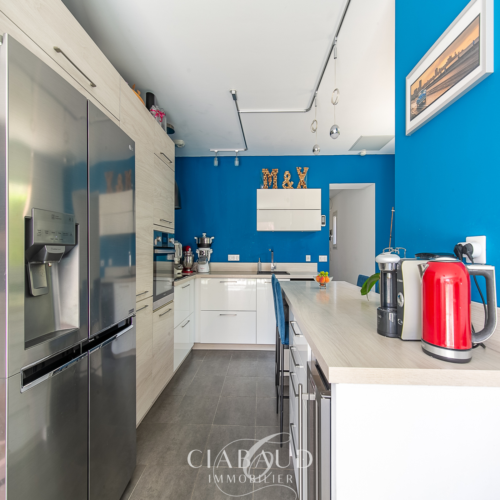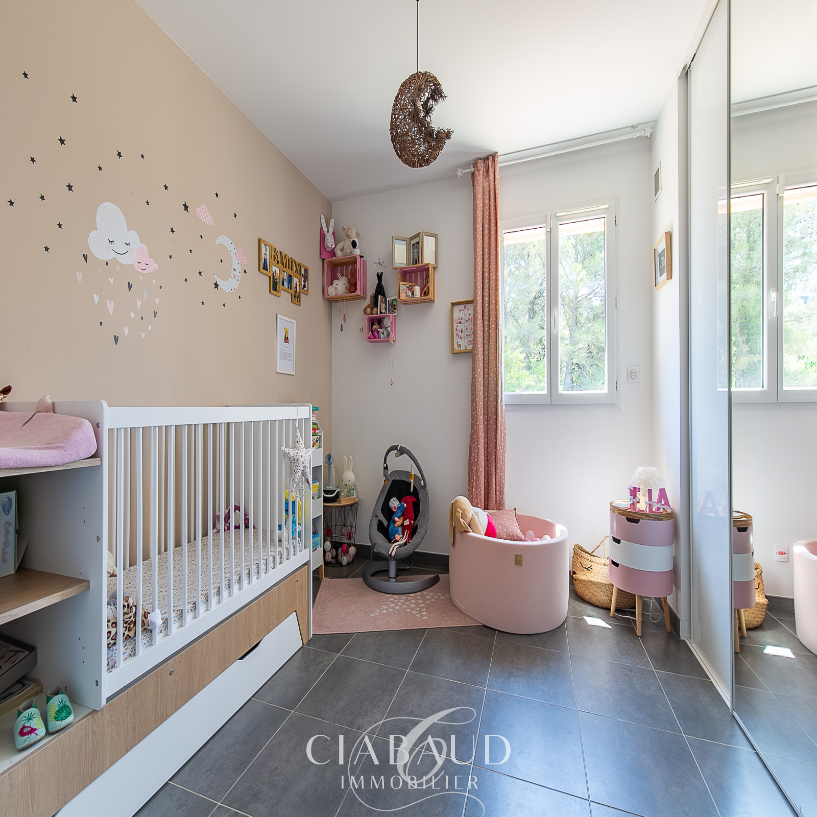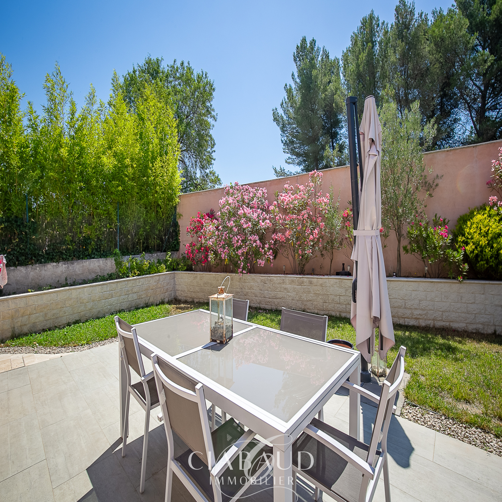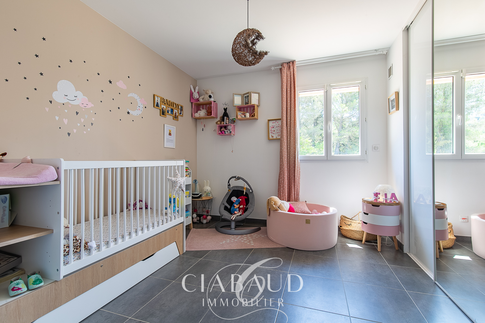 Située à Bouc-Bel-Air, dans une impasse, une maison de type 4 d'environ 100m2 sur un terrain de 482m2 piscinable. Construite en 2017, elle est composée au rez-de-chaussée d'une entrée, d'une grande pièce de vie de 39,26m2 avec poêle à granulés et une cuisine américaine intégrée, d'un cellier, d'un WC avec lave mains et d'une chambre avec possibilité de salle d'eau. À l'étage deux chambres, une salle de bains et un WC séparé. Taxe foncière 1300€. RT 2012, décennale et conformité. Domotique, chauffe-eau thermodynamique et tout-à-l'égout. Proximité transports en commun et commerces. Contact CIABAUD Immobilier Luynes 04 42 53 35 13.