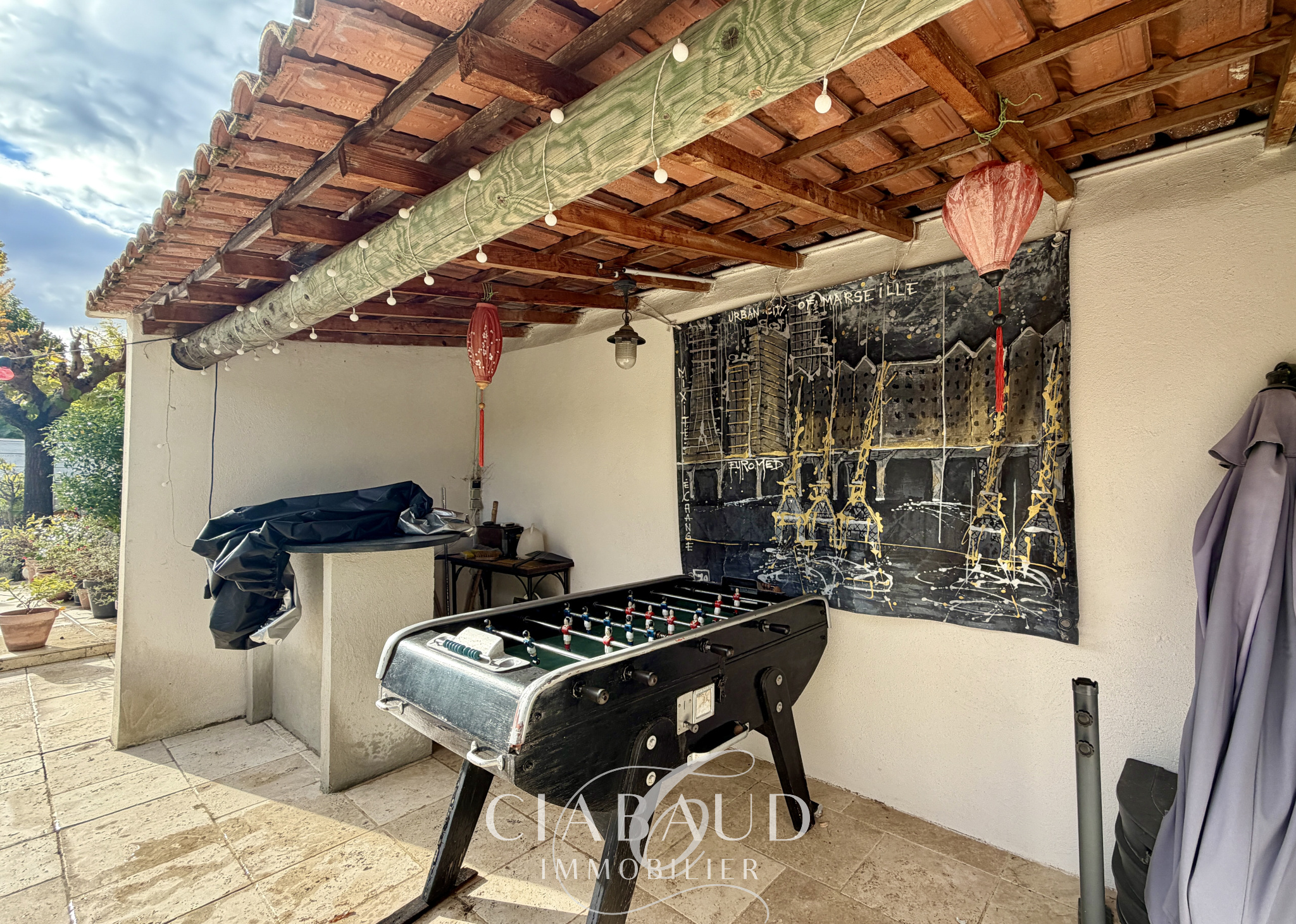 Située au calme et sans vis-à-vis, dans une impasse préservée du quartier de La Mounine à Bouc-Bel-Air, idéalement située entre Aix-en-Provence et Marseille. Cette maison de type 6 d’environ 180 m² offre un espace de vie extérieur de 750 m² avec piscine, pool-house et garage. Le jardin, en position dominante, avec une vue sur la verdure, vous permettra de créer une ambiance unique avec peu d'entretien. Le lieu est sécurisant et paisible tout en vous donnant accès à toutes les commodités. Elle est composée au rez-de-chaussée, d’un hall d’entrée avec rangements, d’une grande pièce de vie cathédrale de 66 m² avec cuisine américaine et cheminée à insert donnant sur une salle à manger avec une vue verte et dégagée ainsi qu’une arrière-cuisine. Côté nuit, 3 chambres avec rangements, un dressing, une salle d’eau et un WC indépendant. L’étage, pouvant servir d’espace parental, propose une mezzanine, une grande chambre, un bureau, une salle d’eau et un WC séparé. Tout-à-l’égout, eau de la ville et forage. Chauffage par chaudière gaz à condensation, double vitrage. Piscine avec dosage au sel. Proximité des crèches, écoles primaires et commerces à pied, d'IBS et des transports en commun.