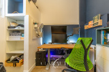 L'appartement se compose d'un hall d'entrée, d'une spacieuse pièce de vie avec une cuisine ouverte, ainsi qu'une salle à manger dans une véranda. Il comprend également une chambre, un bureau, une salle de bains avec WC et une mezzanine offrant un espace nuit supplémentaire.