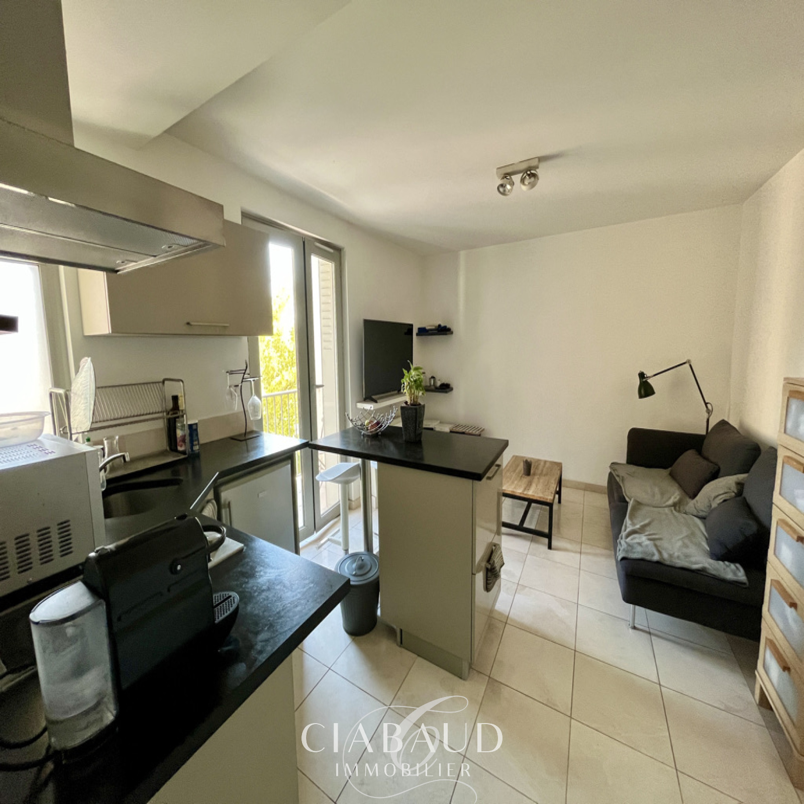 EXCLUSIVITÉ - Situé à Aix en Provence, au calme dans le quartier Axium, à 10 minutes à pied du centre-ville. Un appartement de type 2 de 28,30m2 avec balcon de 6m2, une cave et un stationnement privatif extérieur, au 1er étage d'une résidence sécurisée de 2011. Il est composé d'un salon avec cuisine ouverte, d'une chambre, d'une salle d'eau avec WC. Double vitrage, climatisation réversible et label BBC. Taxe foncière 562€. Charges mensuelle 120€ comprenant le chauffage et la climatisation, l'eau froide, l'eau chaude et l'entretien des communs. Vendu loué, libre le 16/03/2023. Exposition Sud. Contact CIABAUD Immobilier 04 42 53 35 13.