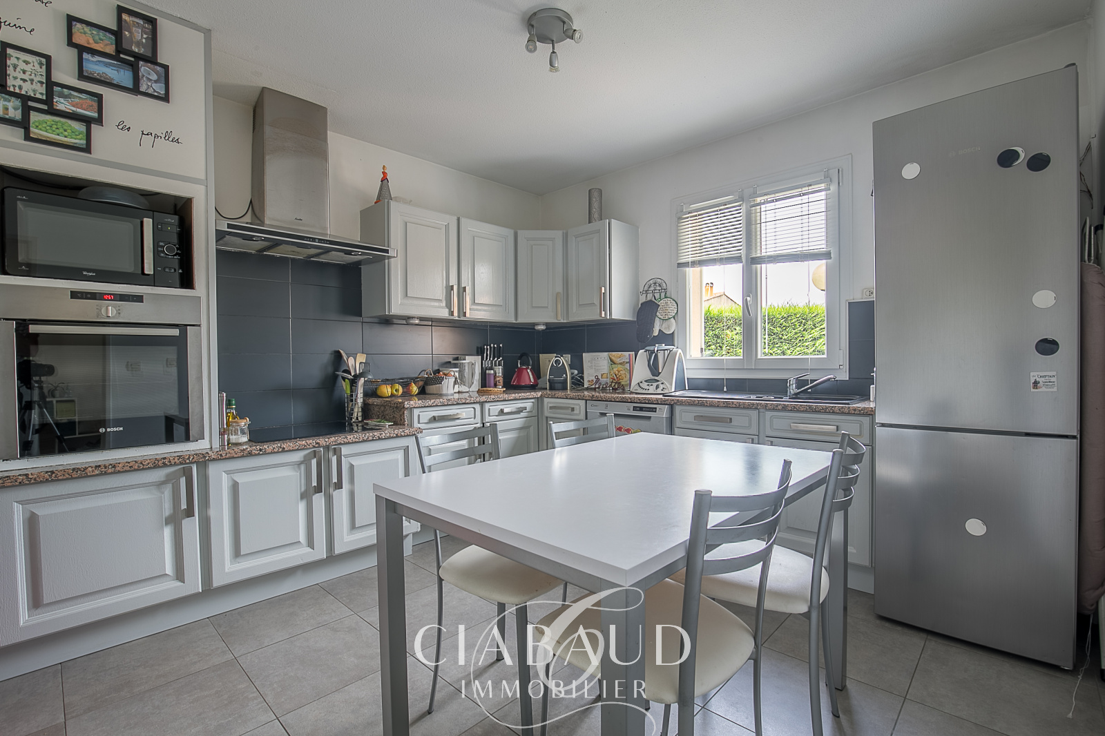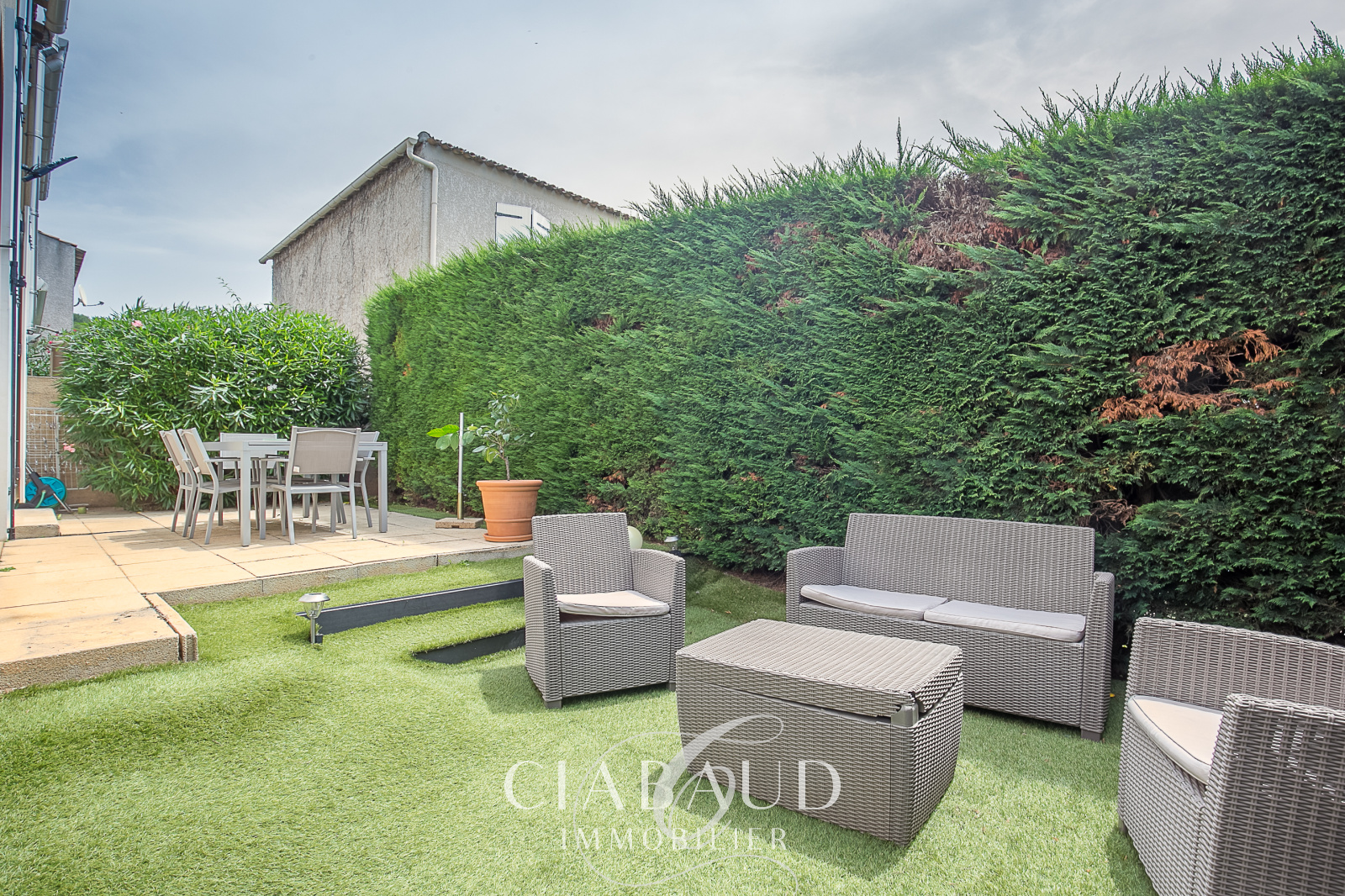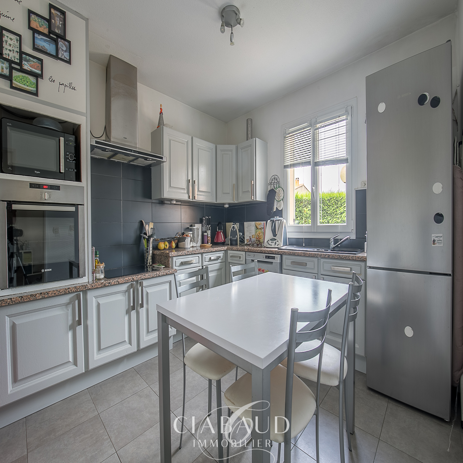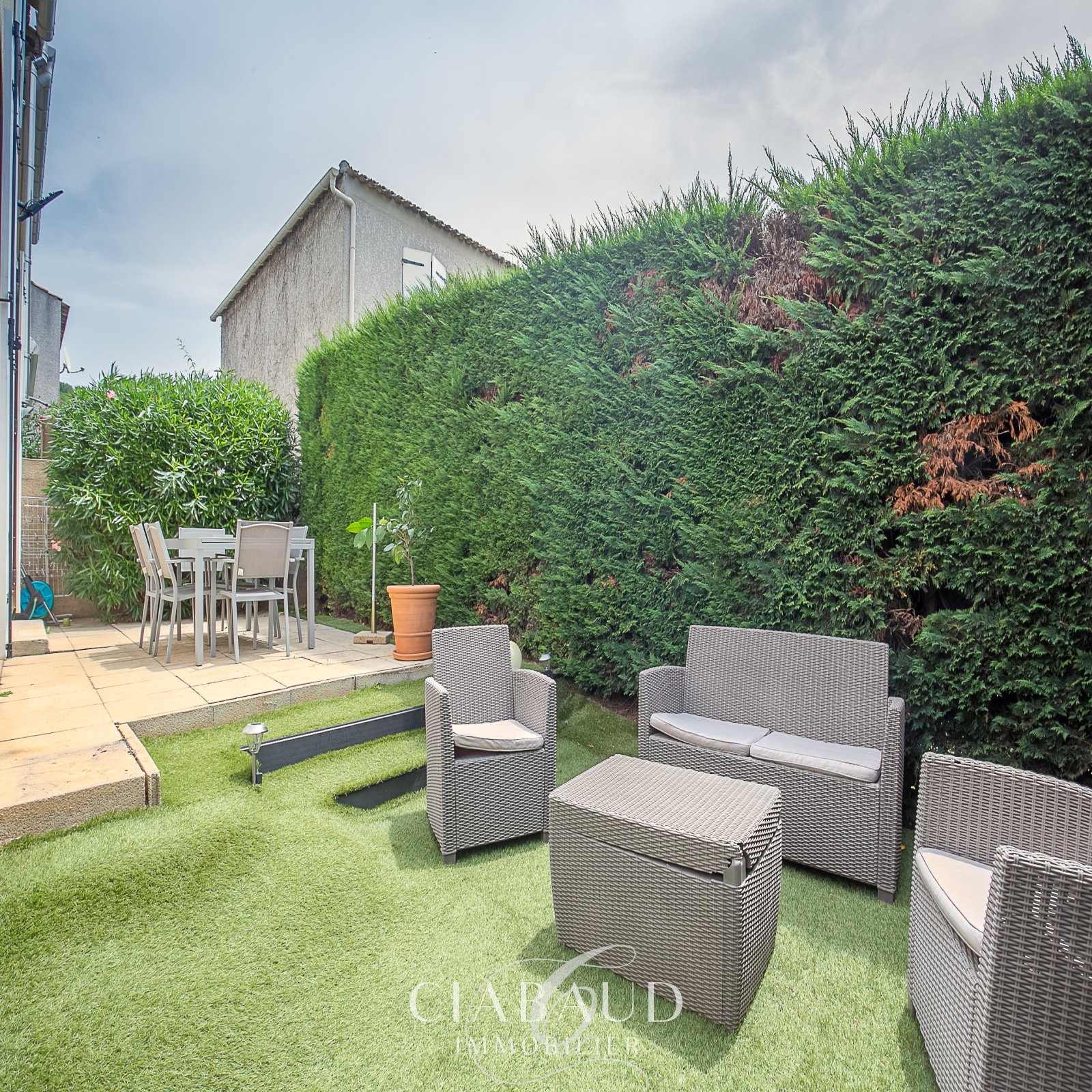 Située au calme et sans vis-à-vis, dans le centre du village de Luynes à proximité d’Aix-en-Provence. Une maison rénovée de type 5 d’environ 99,35m2 avec un garage sur un terrain de 213m2. Construite en 1992, elle est composée d’un hall d’entrée avec rangement, d’une cuisine indépendante, d’un séjour avec cheminée à insert et climatisation réversible ainsi qu’un WC indépendant. A l'étage, une partie nuit climatisée, avec 4 chambres et une salle de bains avec WC. Climatisation réversible, double vitrage, tout-à-l’égout. Charges de copropriété 100€/mois. Taxe foncière 1152€. Contact CIABAUD Immobilier Luynes 04 42 53 35 13.
