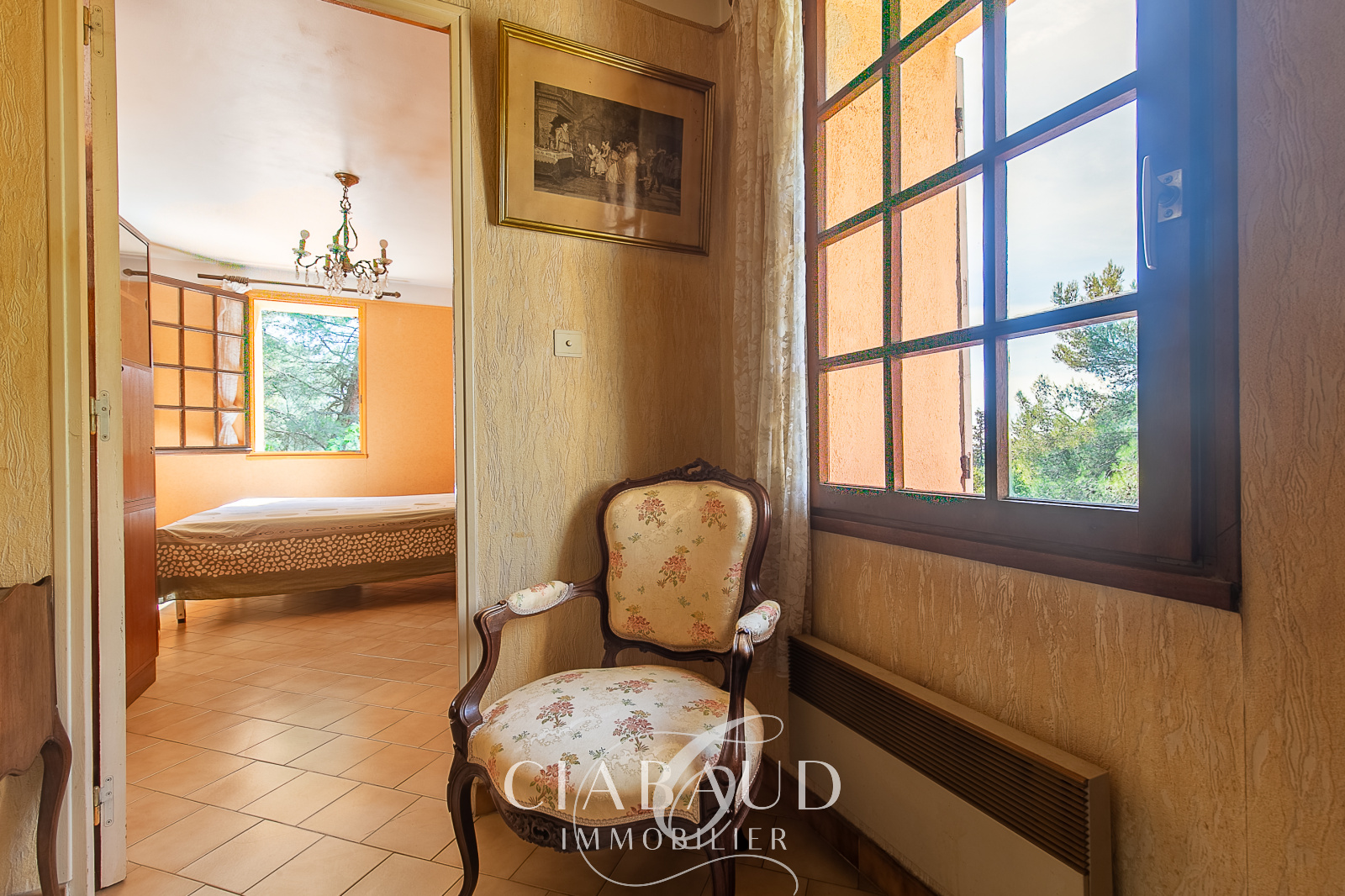 SOUS OFFRE ACCEPTE - EXCLUSIVITÉ - Très rare à la vente - Située dans un écrin de verdure, au calme absolu et sans vis-à-vis, dans la campagne de Luynes à 5 km du centre-ville d’Aix-en-Provence. Une propriété mêlant authenticité et charme de l'ancien de 1,5 ha avec une bâtisse d'environ 116 m2 ainsi que des annexes. Le terrain, de par sa taille et son emplacement, offre une profondeur et un confort exceptionnels, un havre de paix, sans promiscuité, tout en étant proche de tout. Cette ancienne maison nécessite des travaux de rénovation pour lui permettre de refléter tout son potentiel. Elle est composée au rez-de-chaussée d’un hall d’entrée, d’un séjour de 24 m2, d’une cuisine indépendante avec cellier, d’un WC indépendant et d’une cave. À l’étage, 3 chambres, une salle de bains et un WC indépendant. Un grenier, un garage et une dépendance viennent compléter le bien. Chauffage et eau chaude électriques, eau froide de la ville, eau d'arrosage du canal de Provence et fosse septique.