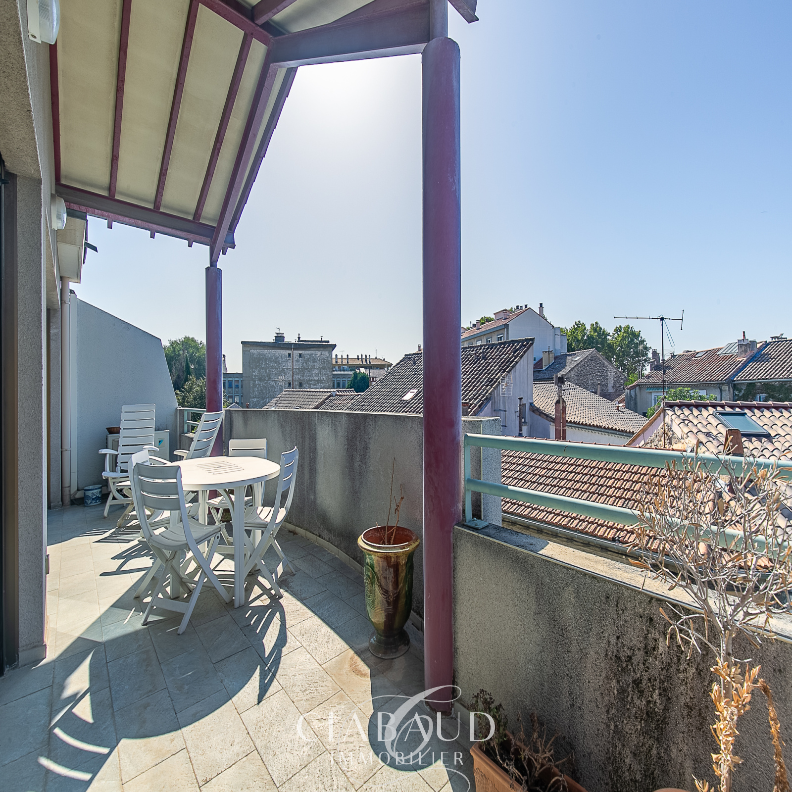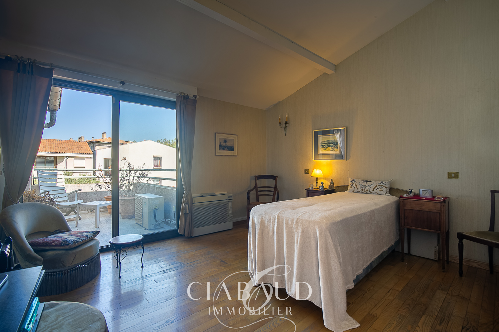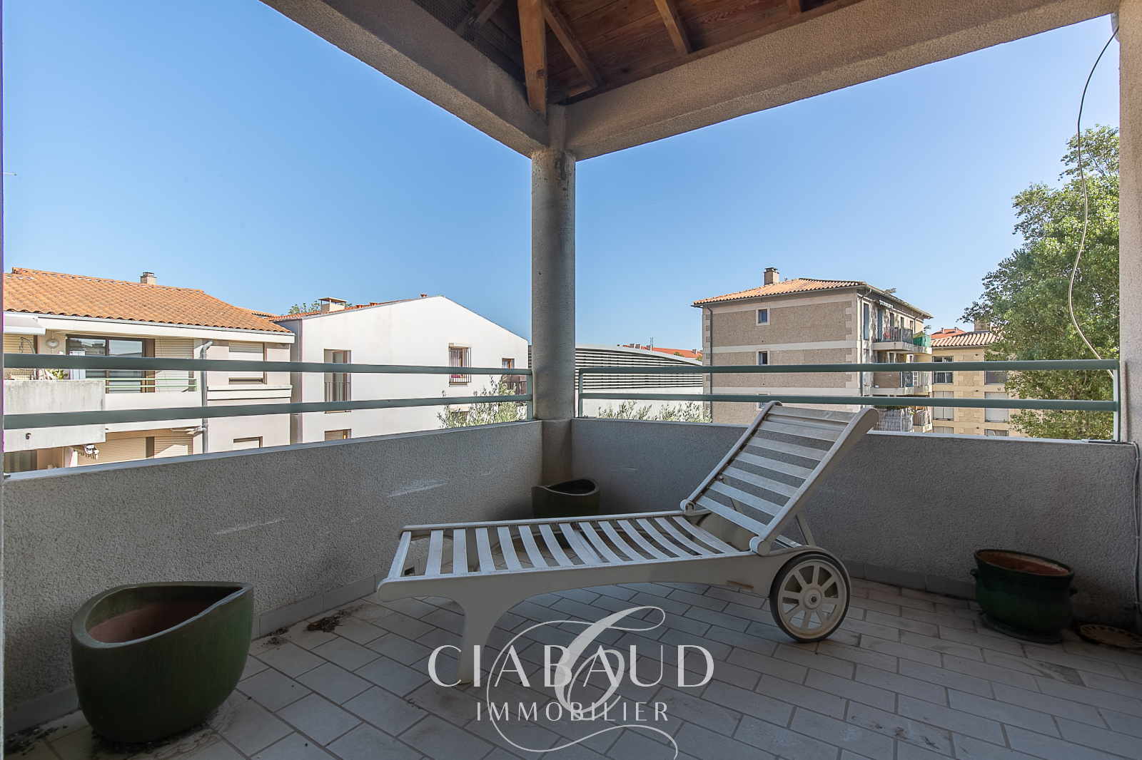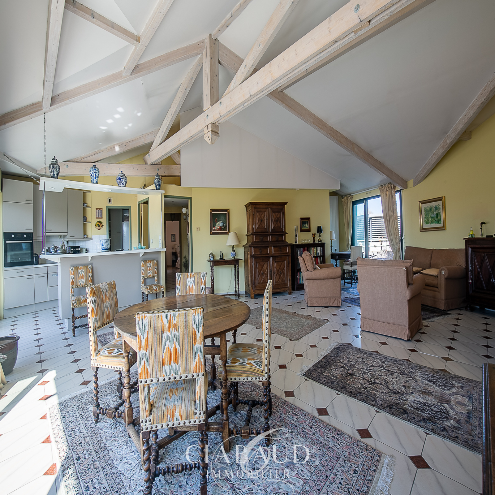 Idéalement situé dans le centre-ville historique d'Avignon, au calme, un appartement de standing avec le potentiel d'un penthouse de type 5 d'environ 153m2 avec terrasses, double garage et cave. Seul au dernier étage d'un immeuble des années 90 avec ascenseur, cet appartement avec ses beaux volumes et ses nombreuses terrasses vous permet de profiter de plusieurs expositions ainsi qu'une vue sur le Palais des Papes. Il est composé d'une grande pièce de vie traversante et climatisée de 66,5m2 avec cuisine américaine avec de grandes ouvertures sur la terrasse et une arrière-cuisine. Attenant une suite parentale d'environ 35m2 avec salle de bains, dressing, WC indépendant et un accès terrasse. Côté nuit, 2 chambres avec placard et accès terrasse, un bureau, deux salles d'eau et un WC indépendant. Chauffage individuel gaz et climatisation. Contact CIABAUD IMMOBILIER 04 42 53 35 13.